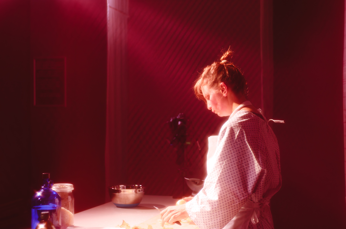 Laura Parker lädt zum Abendessen ein. Während sie kocht, teilt sie die Erfahrungen von Betroffenen und medizinischem Fachpersonal. Sie schält, kehrt Inneres nach außen, schneidet, lacht und weint. Am Ende serviert sie das fertige Essen. Es darf gesprochen werden.